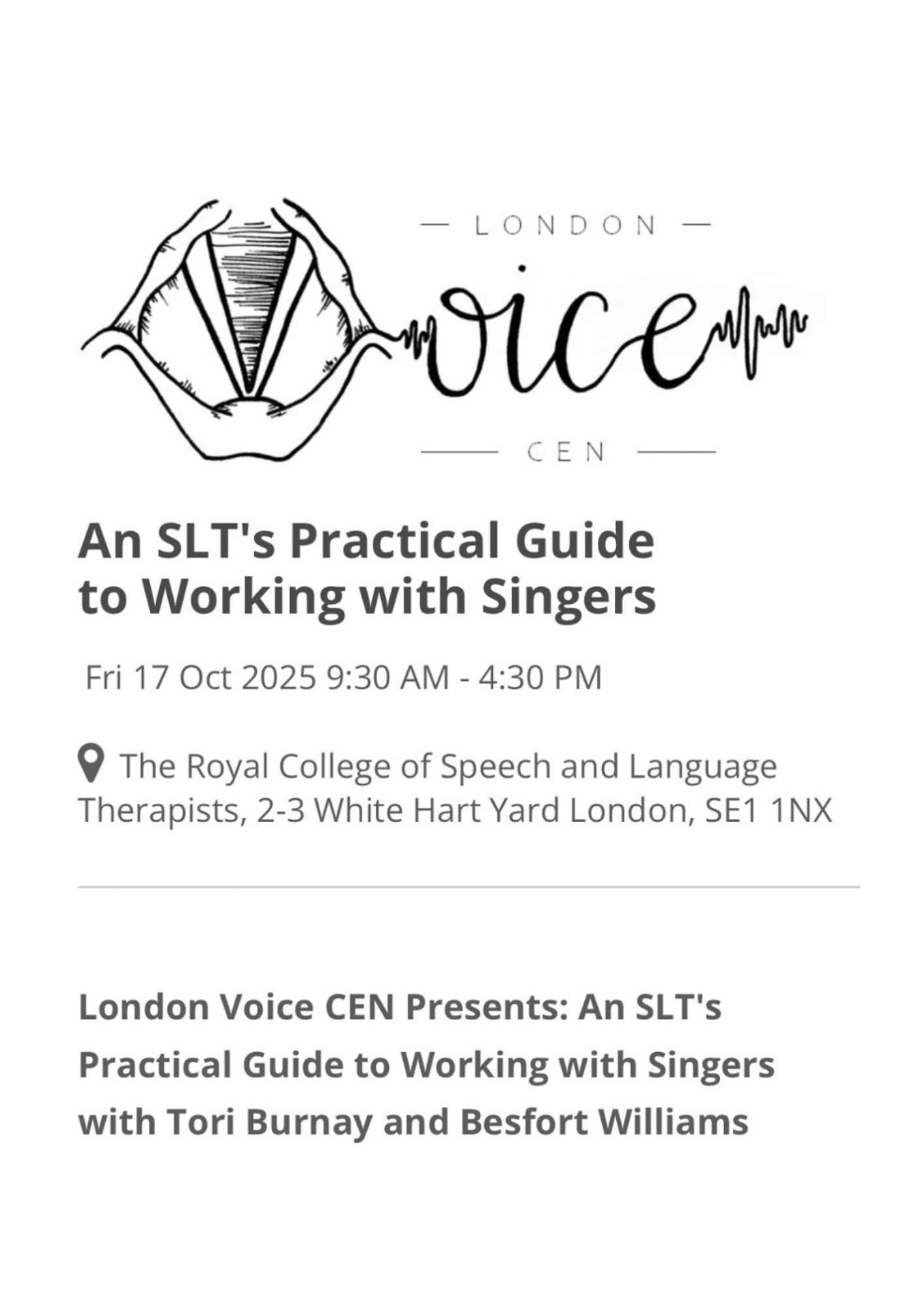 I am the Singing Voice Rehabilitation Coach at Guy’s and St Thomas’ Hospital, London, where I work alongside a world-class team of clinicians, helping injured singers and those experiencing voice issues regain their capacities and return to work.
